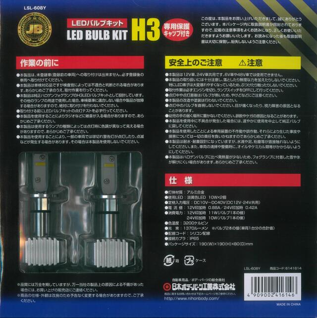 - LSL-608Y JB激光LED H3バルブ 黄 保護キャップ付