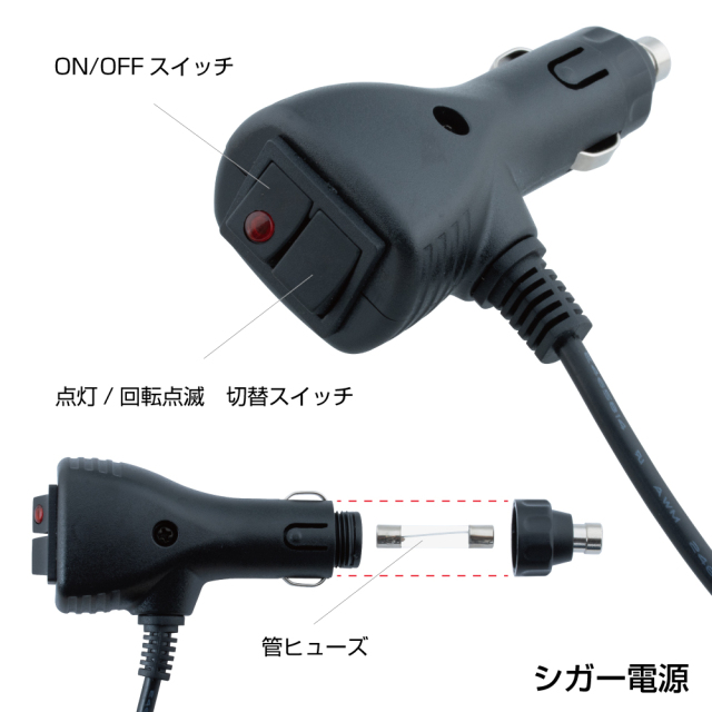 ●シガープラグ・配線コード 10Aヒューズ内蔵、 コード長さ:5m