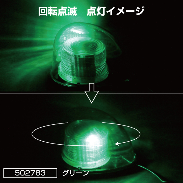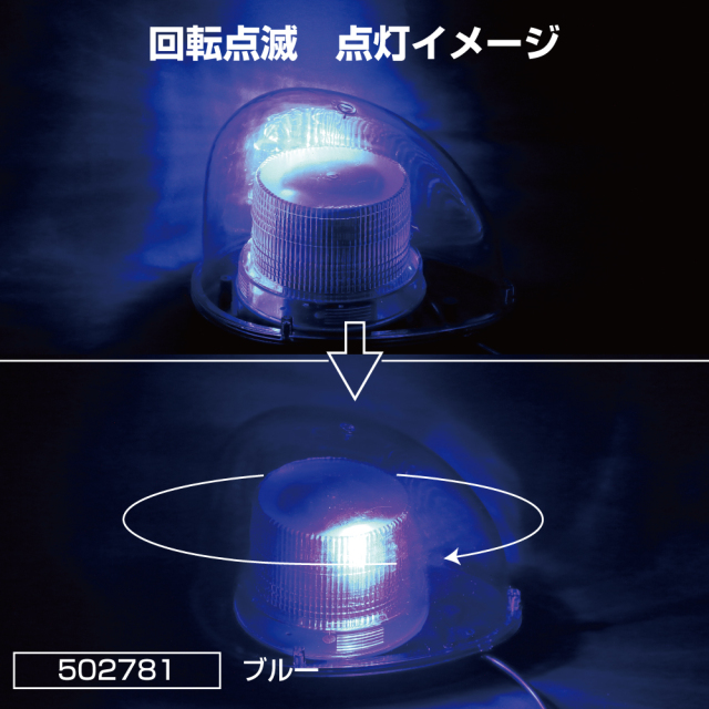 ストロボ点滅と、まるで回転しているかのような動きを見せる回転点灯の切り替えが可能!